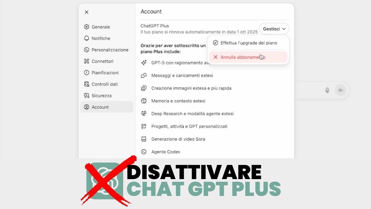 Come disattivare ChatGPT Plus: guida aggiornata (2025)