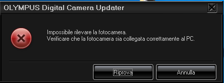 la tua macchina fotografica Olympus non è stata rilevata correttamente dal programma, probabilmente a causa di un errore durante l'installazione, in questo caso ti consigliamo di reinstallare il software compresi i driver.