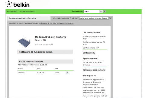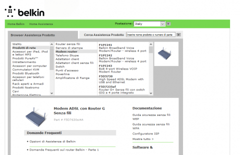 Fatto ciò, collegati al Belkin Support per cercare tramite il programma assistenza prodotto l'aggiornamento per il tuo modem router.